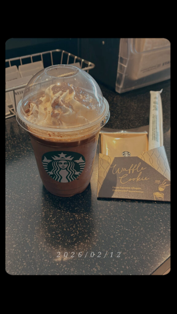 思ったより早く終わってホッとしたし、せっかく時間ができたから少し買い物して、その帰りにずっと気になってたスタバの新作をゲットしてきた。